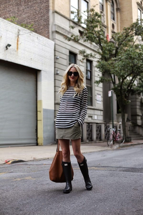 October 11, 2013 right before the rain Top: Ann Taylor c/o. Skirt: Denim and Supply (old). Bag: Cuyana Tall Tote. Boots: Hunter X Rag and Bone. Sunglasses: Karen Walker ‘Super Duper’. Lips: Stila ‘Beso’.