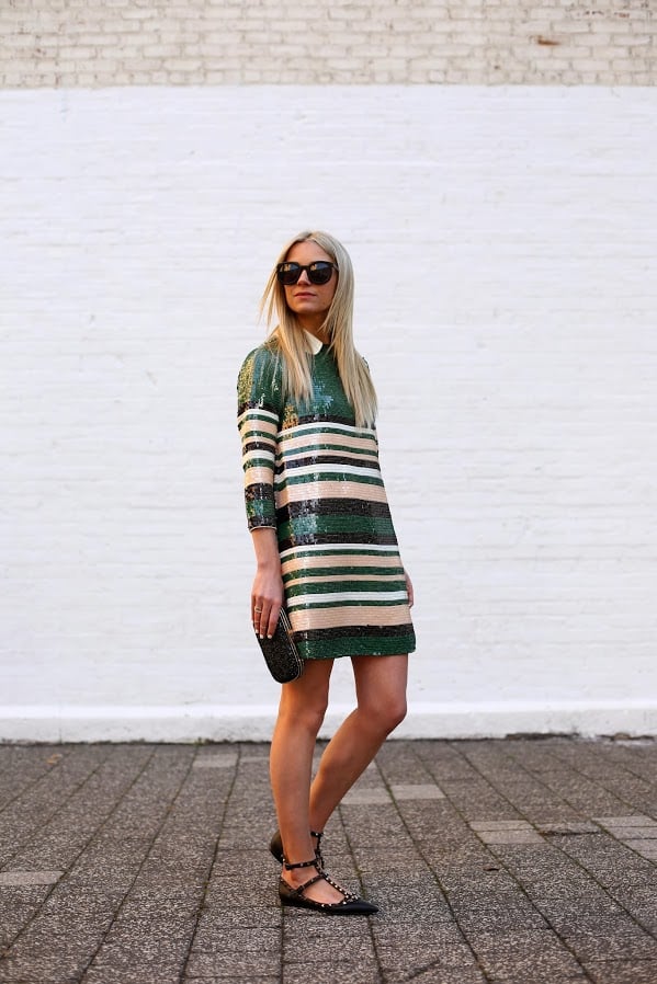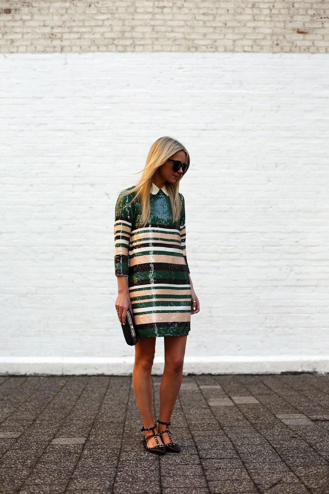 Dress: ASOS (also love this one and this one). Shoes: Valentino. Collar: From a Milly Sweater (similar here). Minaudiere: Anya Hindmarch. Sunglasses: Karen Walker ‘Super Duper’. Nails: Deborah Lippmann ‘Amazing Grace’. Rings: Cartier, BaubleBar.