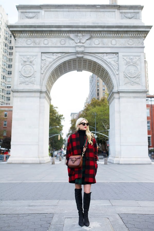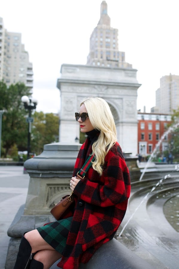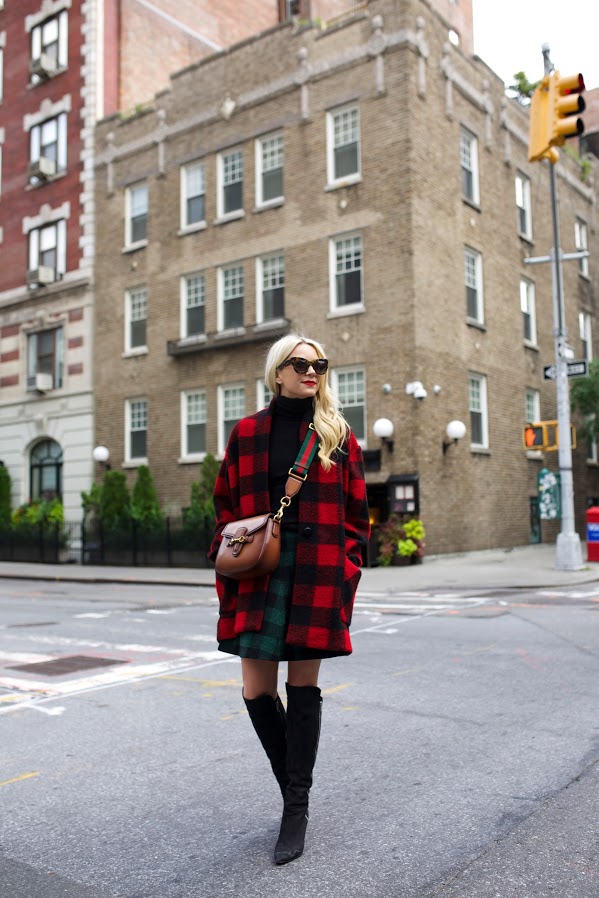 Skirt (matching jacket here). Boots: Sigerson Morrison (old, love these and these over the knee options). Bag: Gucci. Jacket (similar here and here). Sunglasses: Karen Walker. Turtleneck: Calypso (old, similar). Lips: Stila ‘Beso’.