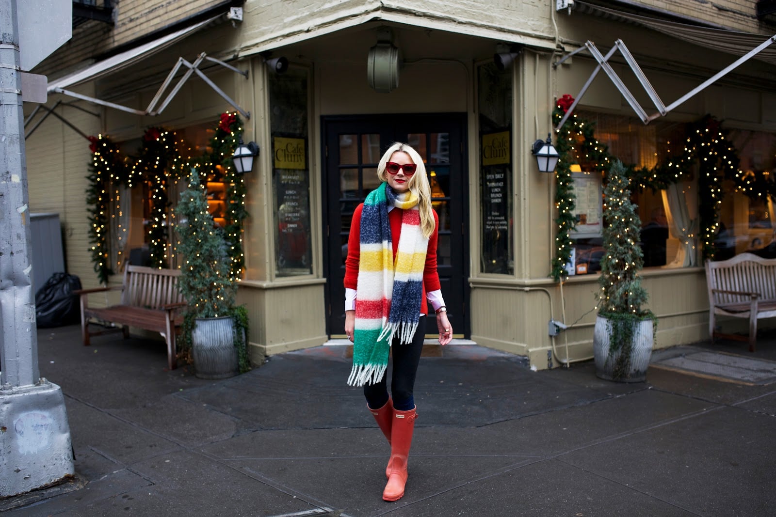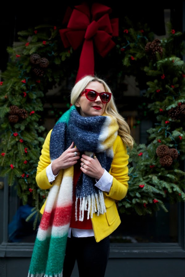 Scarf: J.McLaughlin (sold out, but also love this one and this one). Sweater: J.McLaughlin. Pants: J.McLaughlin. Top: J.McLaughlin. Boots: Hunter. Sunglasses: Thiery Lasry. Thank you to J.McLaughlin for partnering on this post, see the full holiday lookbook here!