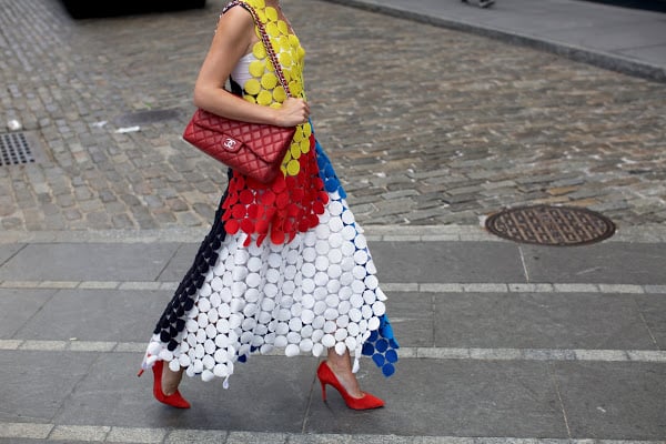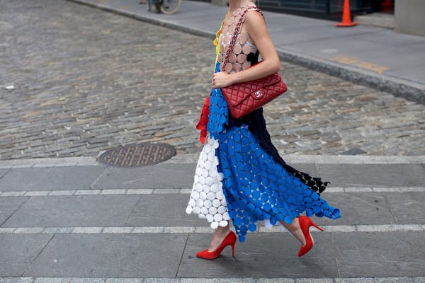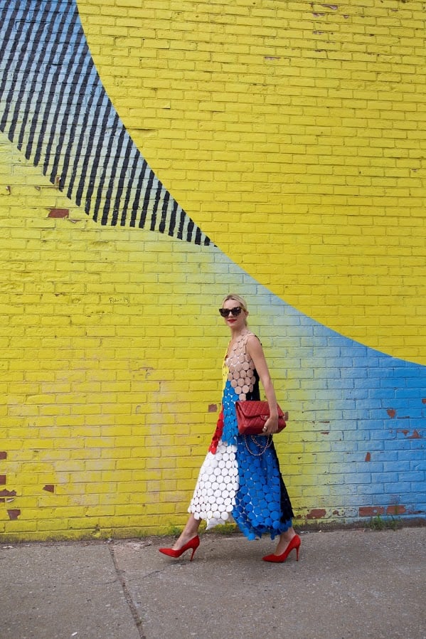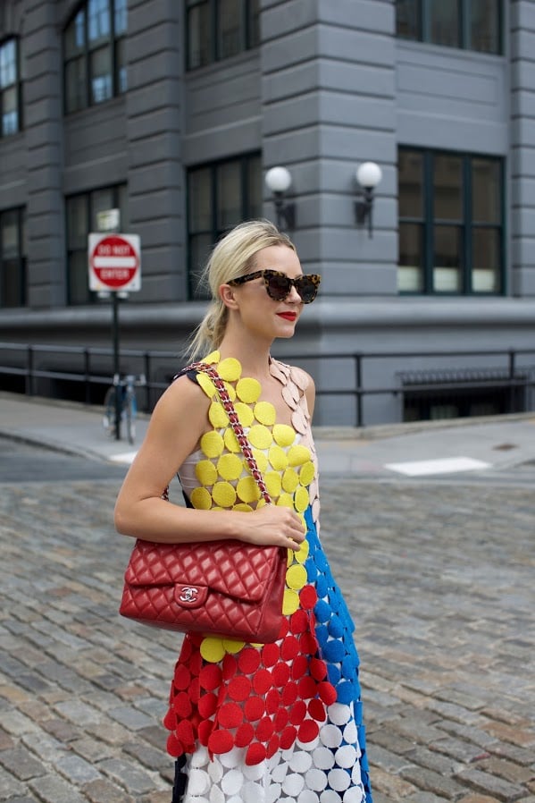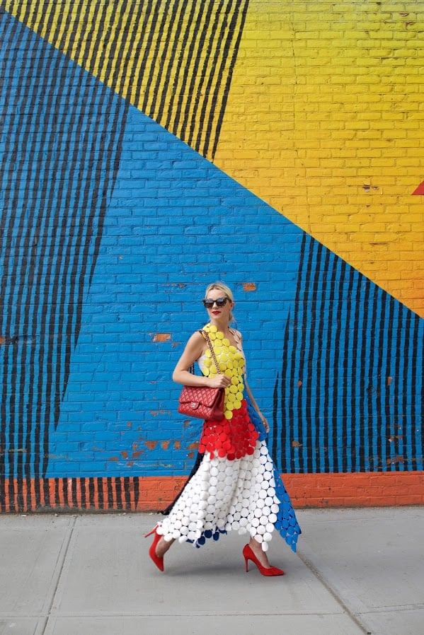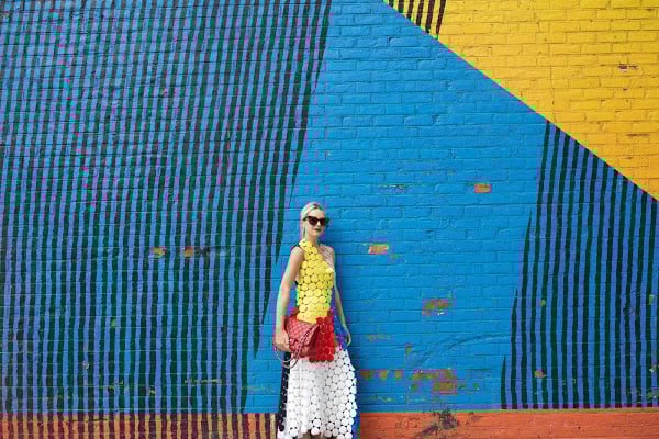 Top: Marni. Skirt: Marni. Shoes: BCBG (on sale). Lips: Stila ‘Beso’. Sunglasses: Karen Walker ‘Starburst’ (on sale). Bag: Chanel.