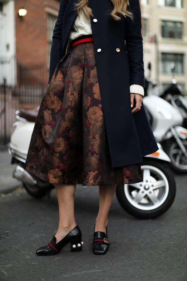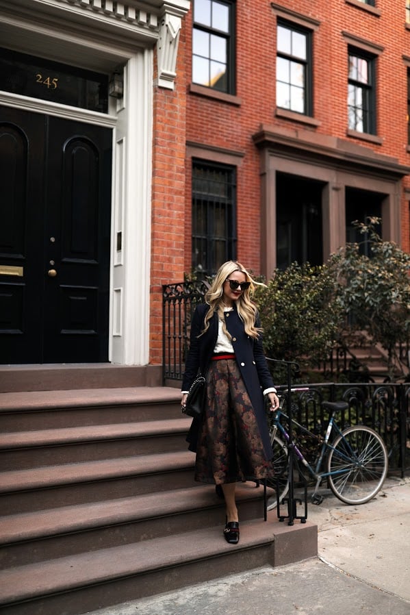 Skirt: ASOS. Cropped Cable Sweater: J.O.A. (included in the shopbop F&F sale with MAINEVENT16, I also got this and this!). Shoes: Gucci. Coat: Ted Baker. Sunglasses: Karen Walker.