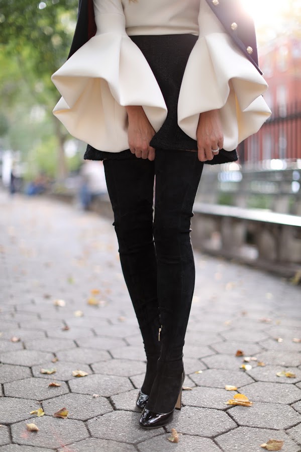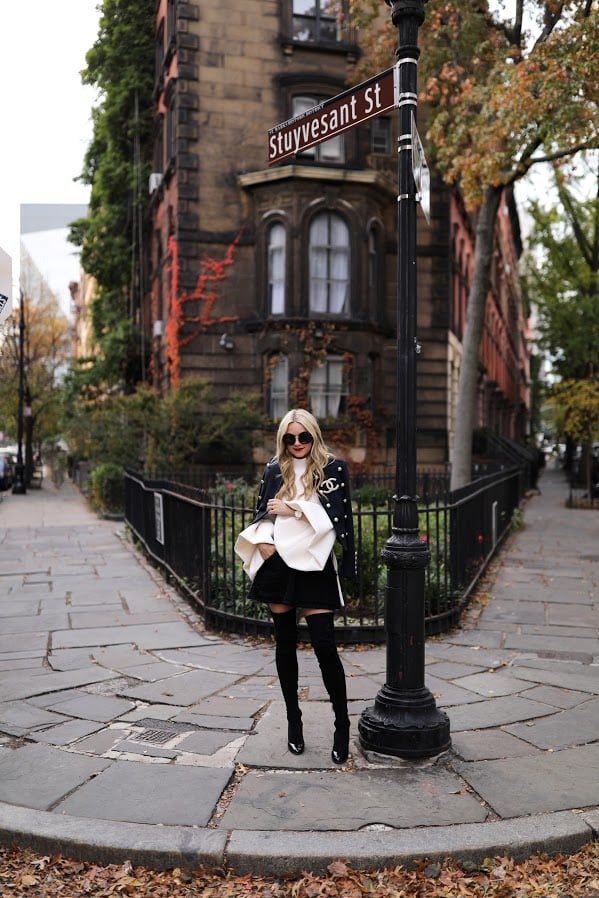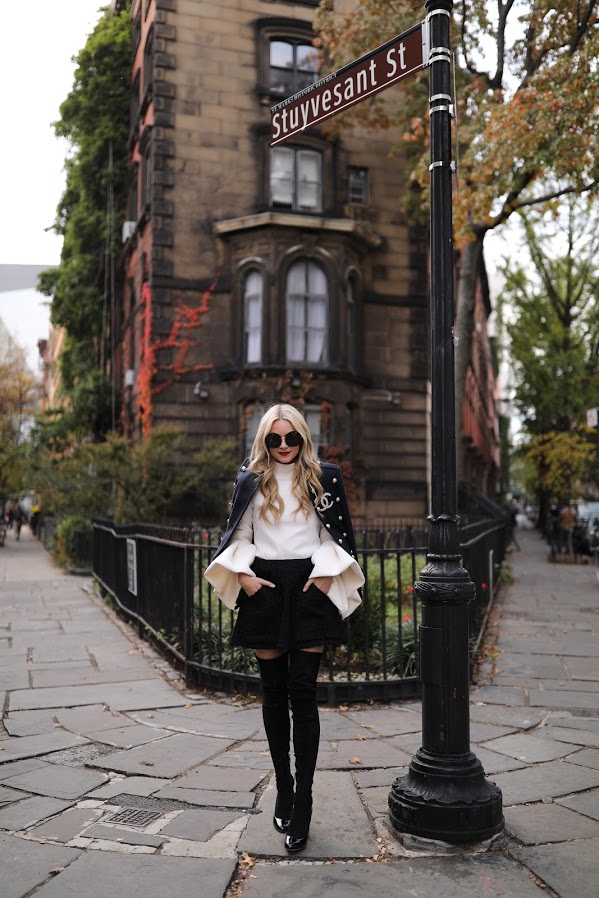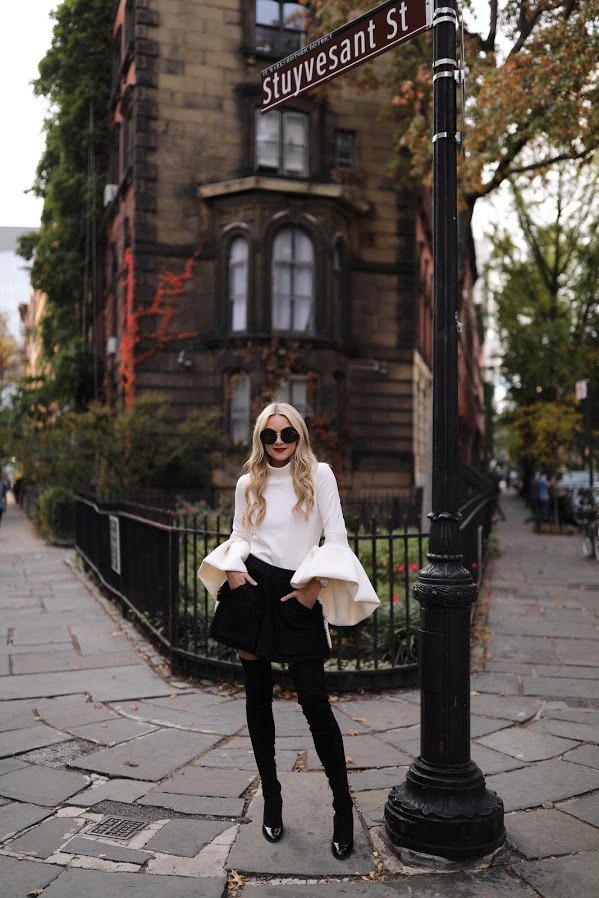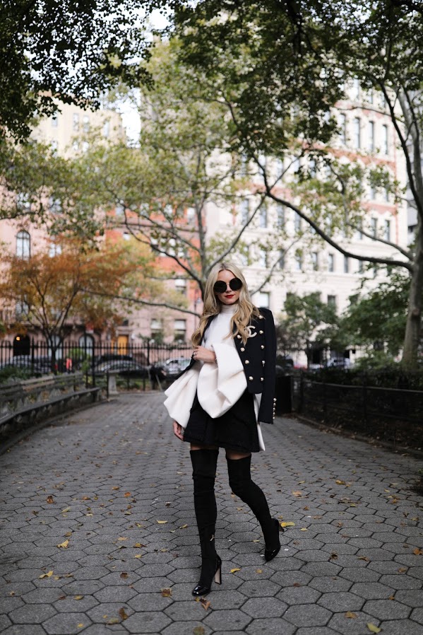 Jacket: Burberry (similar here, also love this Burberry coat on sale). Top: Brandon Maxwell. Boots: Dolce and Gabbana (old, similar here, here and here). Skirt: Goen J. Sunglasses: Linda Farrow. Lips: Stila ‘Beso’. Thank you to Nordstrom for partnering on this post.