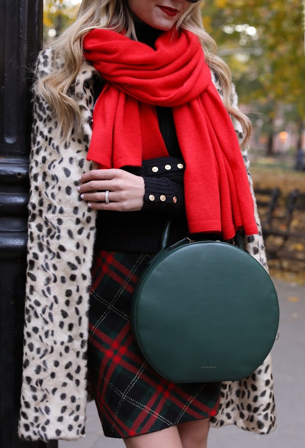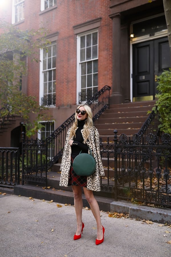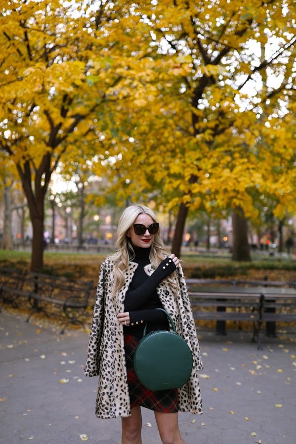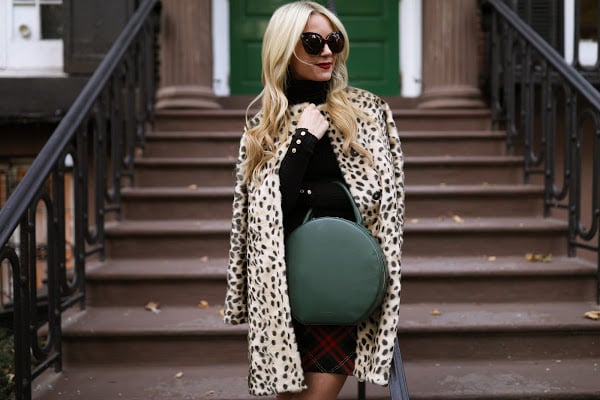 Leopard Coat: J.McLaughlin. Turtleneck: J.McLaughlin (also love the camel). Bag: Mansur Gavriel. Plaid Skirt: J.McLaughlin. Sunglasses: Linda Farrow. Scarf: J.McLaughlin. Thank you to J.McLaughlin for partnering on this post.