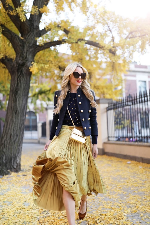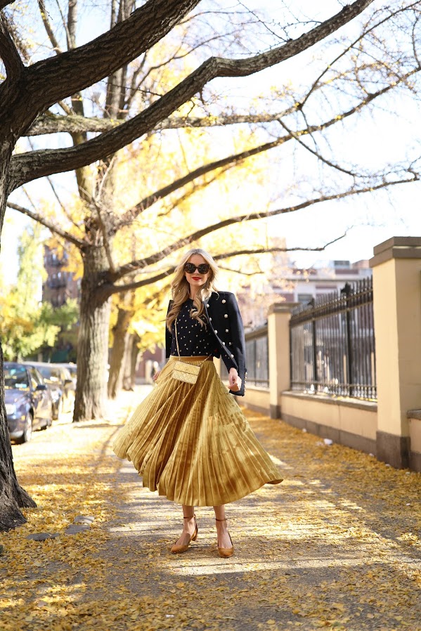 Skirt: Topshop (also in pink!). Star Sweater: Jcrew (on sale with WARMSTYLE). Jacket: Burberry (also seen here, more budget friendly option here). Shoes: Jcrew (also love these velvet booties in 4 colors). Sunglasses: Linda Farrow. Bag: Vintage.