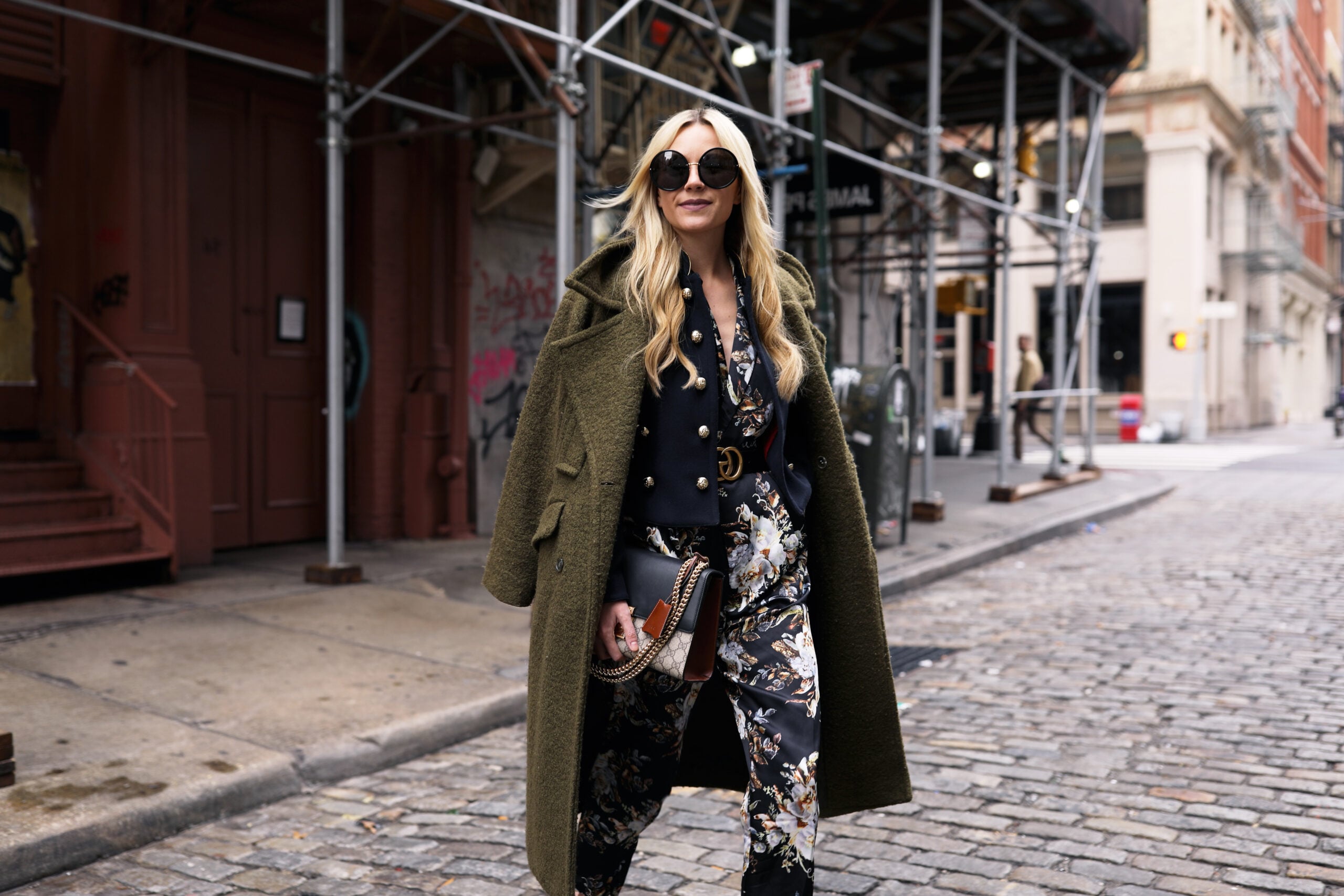 Jumpsuit: ASOS (under $50). Shoes: Gianvito Rossi (last seen here, similar version here for $40). Belt: Gucci (this has been on repeat, last seen here!). Military Coat: Burberry (also seen here and here). Coat: Old, similar here. Bag: Gucci. Sunglasses: Linda Farrow.