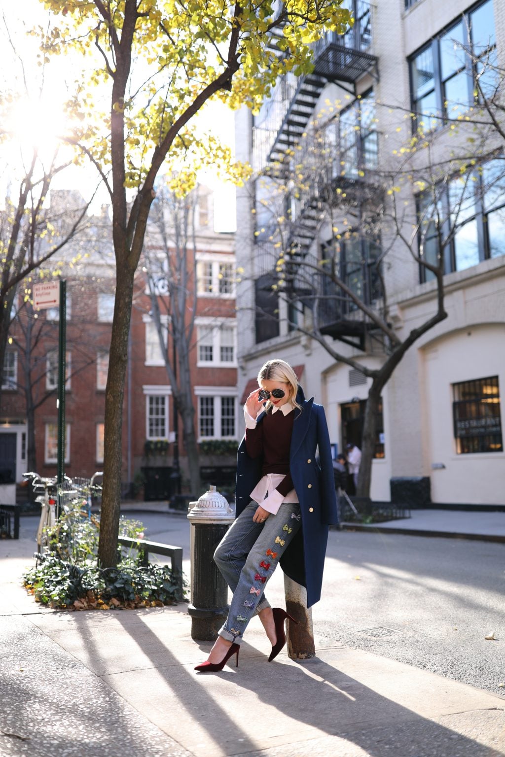 Coat: Smythe (also love this navy maxi coat under$200). Denim: Tu es mon (snagged on sale during cyber Monday, also love these under $100). Pumps: WhoWhatWear c/o (under $40, also love these velvet mary janes from the collection). Sweater: Tippi. Top: Micahel Kors. Sunglasses: Linda Farrow.