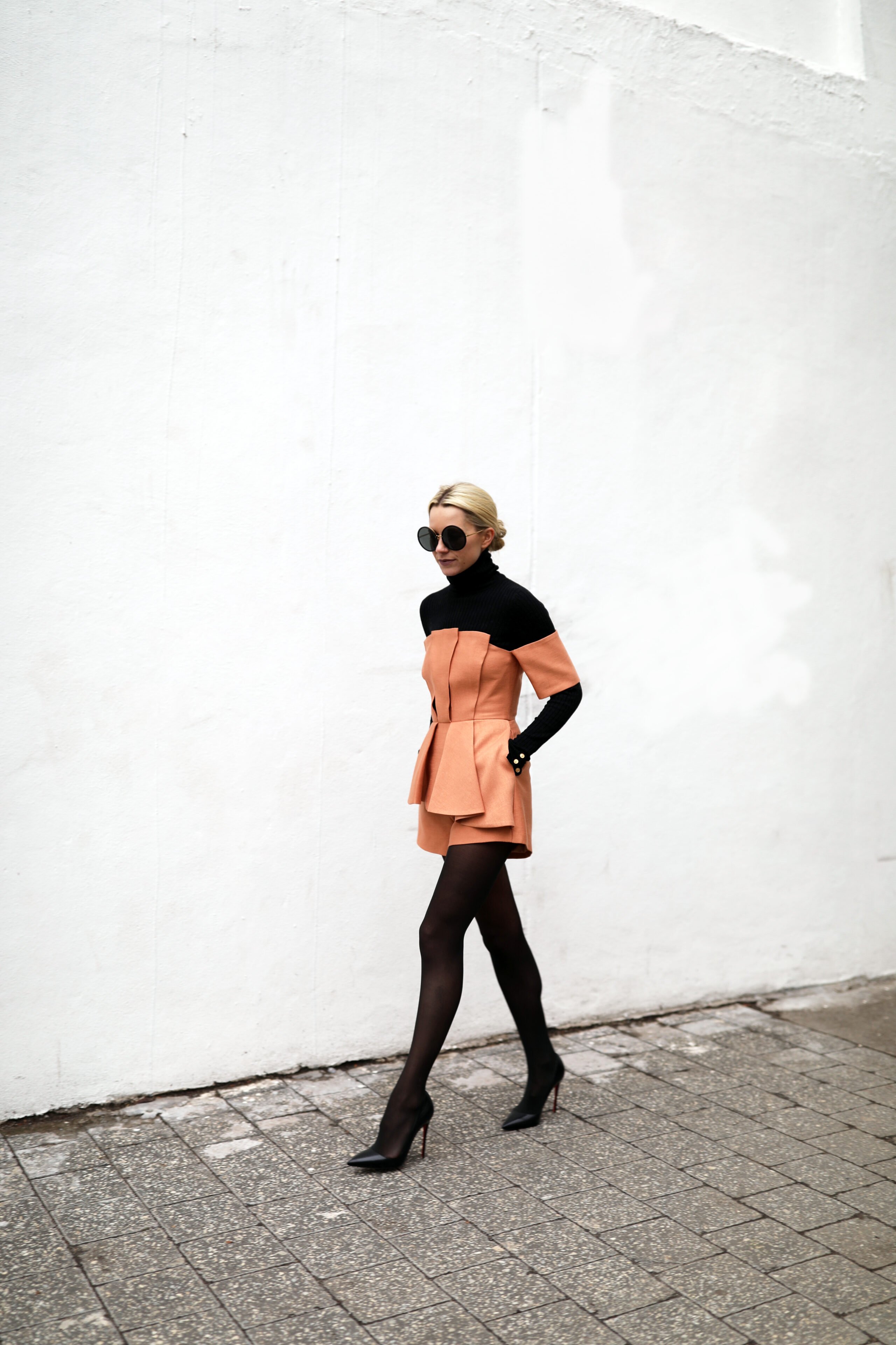 Romper: C/MEO (also love this romper and this romper). Turtleneck (last seen here). Shoes: Christian Louboutin ‘So Kate’. Tights. Thank you to Nordstrom for partnering on this post.
