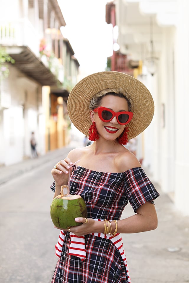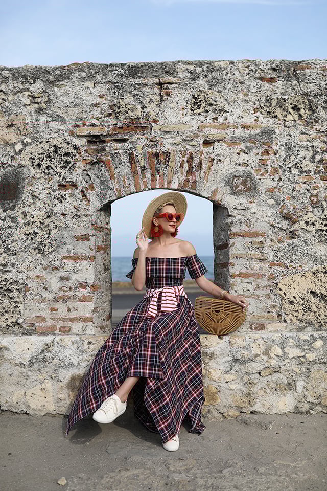 Dress: Christine Alcalay. Shoes: Sezane. Top: Saint James. Bag: Cult Gaia. Hat: Topshop. Sunglasses: Celine. Earrings: Net-A-Porter.