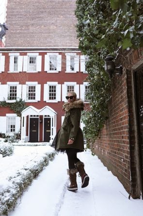 one // Boots: Sorel. Leggings: Spanx (my favorite). Sunglasses: Le Specs (such a quality pair at $69). Socks: Madewell. Sweater: Everlane. Skirt: Maje (such a great shape, last seen here with a big bow!, similar on sale). Coat: Joe Fresh.