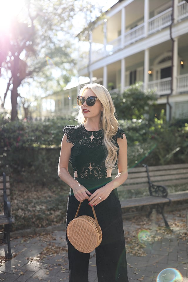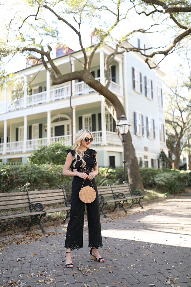 CHARLESTON CHARM // BLACK EYELET JUMPSUIT