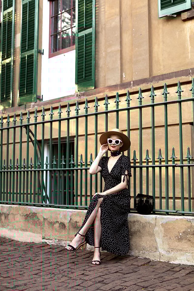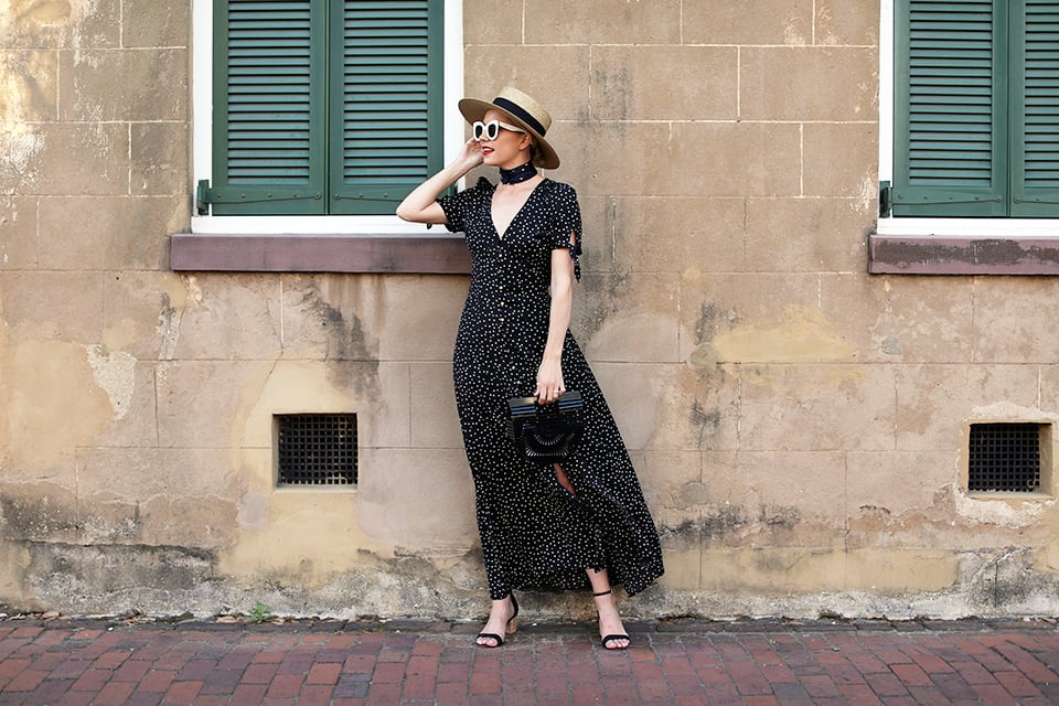 Dress: Karlie Kloss for Express (also love the floral version here!). Hat: Gucci. Sunglasses: Celine. Bag: Cult Gaia. Shoes: Schutz. Thank you to Express for partnering on this post