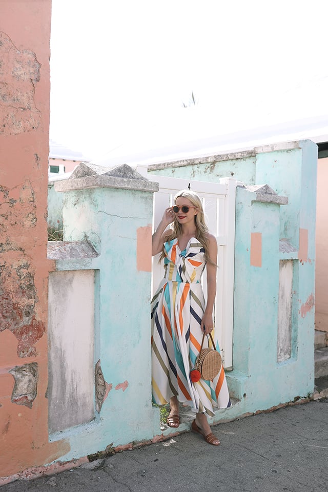 Dress: ASOS (see my other rainbow picks below!). Bag: Shopbop. Shoes: Madewell (also seen here). Keyfob: Kate Spade (also love this cherry one and this lemon one). Sunglasses. Straw bag: Vintage via Ebay.