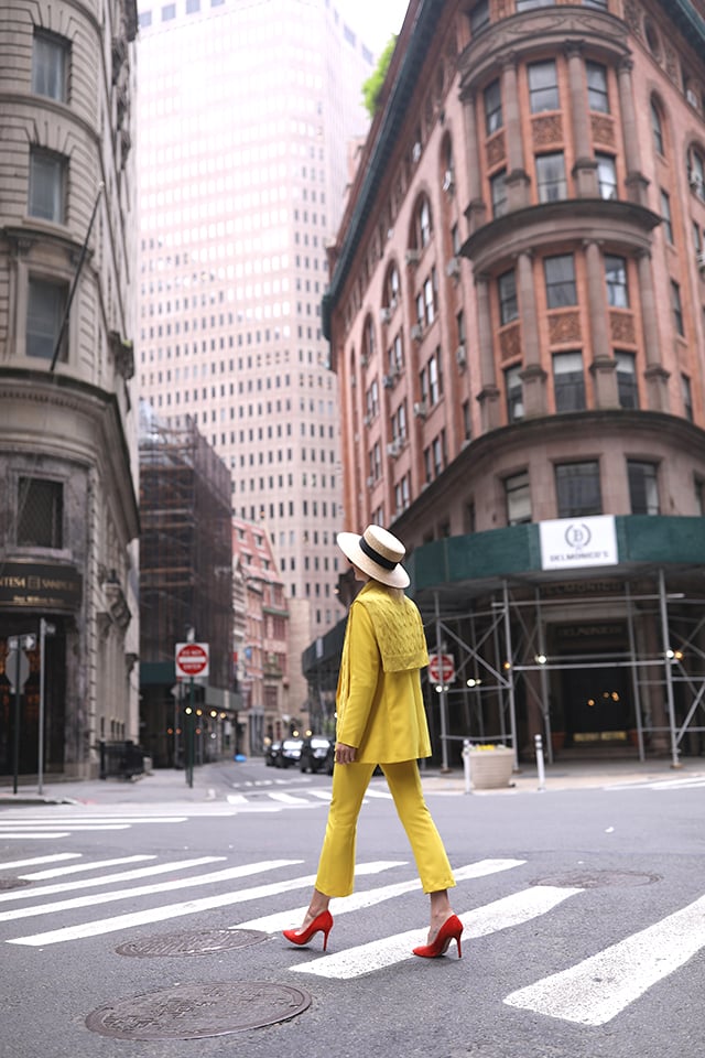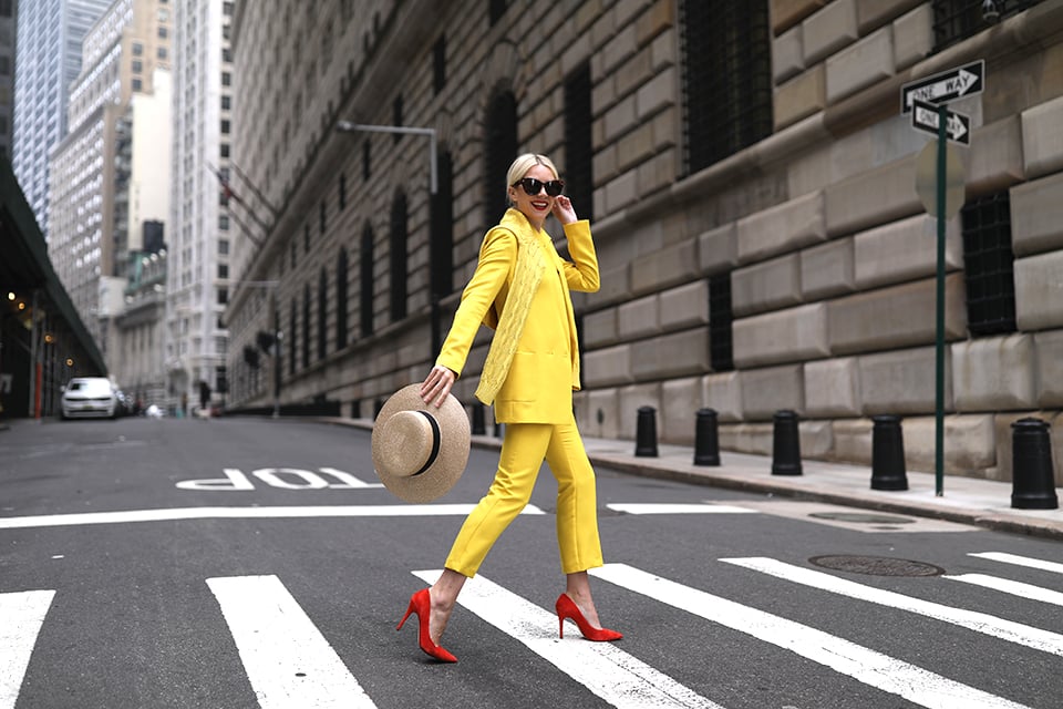Suit // Jacket here (on sale) and pants here (also love this affordable blazer and this stripe one). Top: Jcrew (also in pink). Hat: Gucci (as seen here and here). Pumps. Sunglasses: Linda Farrow.