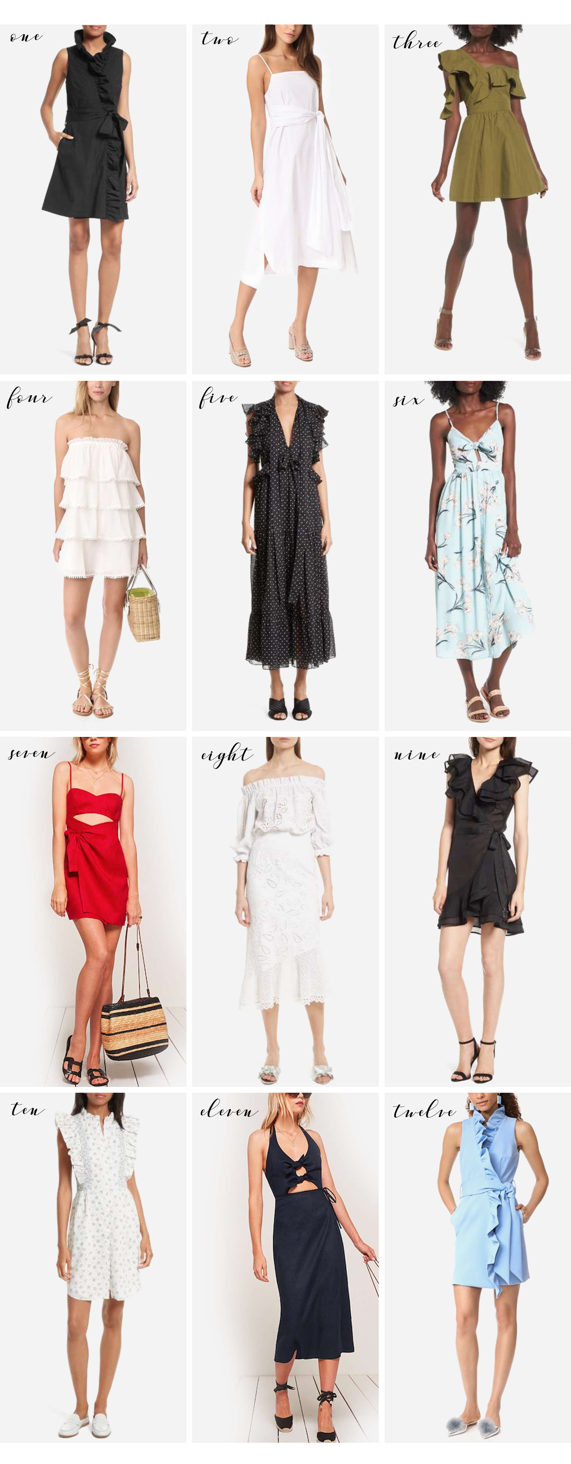 Dress week continues! Today’s outfit post featured an adorable tie front dress and over here on edit & etc. it is all about ruffles, bows and tie front details. Ruffles and bows create the perfect feminine touch to any summer frock. Effortless, yet elegant, these flirty elements create interest even in the simplest of dresses. I have always had a penchant for ruffles and bows as seen here, here and here and with so many innovative silhouettes this summer I find myself buying more and more. Below you will find these touches in everything from maxi dresses to mini dresses, florals to polka dots and much more!