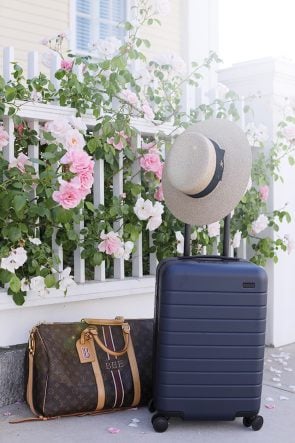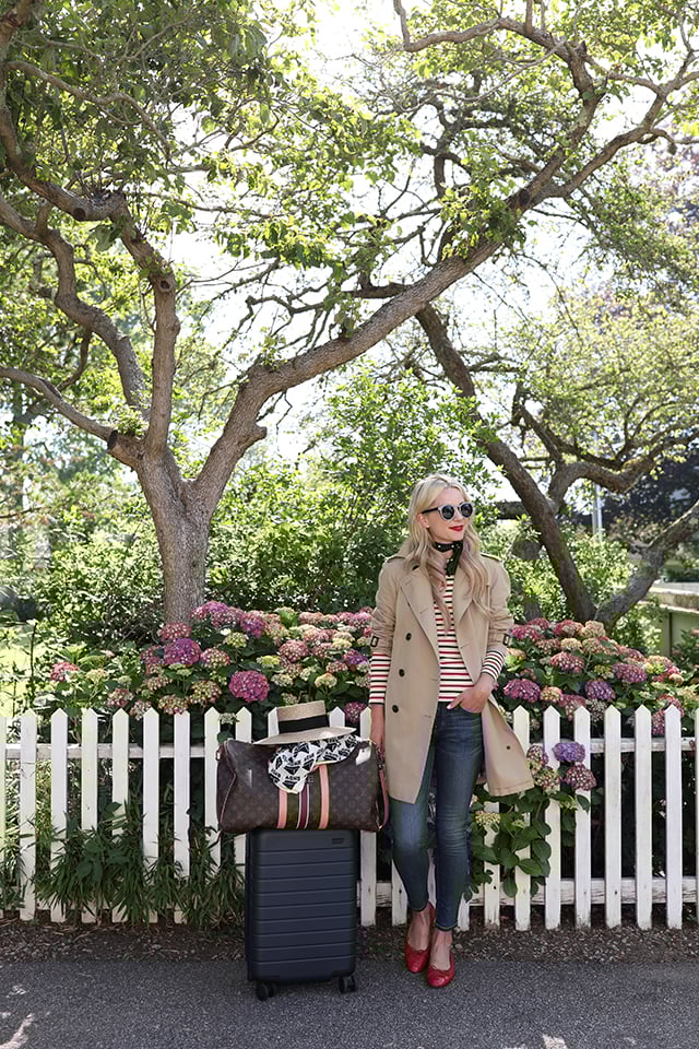 Denim: Current Elliott ‘Stiletto’ in Townie (the Current Elliott stilettos have been a staple in my closet for the last 5 years! See more picks here.). #paradise Striped Tee: Maison Labiche (sold out, but also love this one on sale and see more of my picks here!). Ahoy Sweater (on sale). Flats: Chanel (I also love to travel in these flats and these). Trench: Burberry. Overnight bag: Louis Vuitton. Carry on: Away (I got one after my mom raved about hers! It even has a built in USB charger #lifesaver). Scarf: Jcrew. Sunglasses: Illesteva (see my full sunglass edit here). You can see all my go-to casual style pieces over on edit & etc. here!
