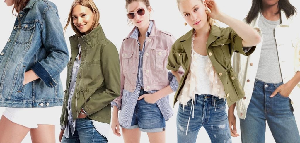 When adding a lightweight jacket over a knit dress, I ask myself a few questions. Is it just loose enough to be comfortable and still look cute? The last thing I want is a restricting or form fitting jacket, particularly in the shoulders, on a long flight or drive. Does it have enough pockets for carry? Meaning, can it fit my iphone, lipgloss, and passport? And, as I often like to add a lightweight silk scarf around my neck when traveling, does the jacket have a collar that can stand? From here, I look at color, fabrication, and silhouette. I tend to favor neutrals or earth tones in lightweight jackets that can pair back nicely to the knit dress to achieve a more muted palette. In terms of fabrication, I like to keep it as light as possible. It is summer, and is usually hot, but often airports, planes, or trains can be on the colder side. A lower ounce denim weight or lightweight cotton twill fabric usually does the trick. These fabrics make the jacket comfortable and practical both on and off; easy to wear, but also easy to carry, tie around the waist, or fold over your favorite crossbody bag. The classic denim trucker jacket or military jacket are my two most go-to silhouettes, but I do love a good short sleeve option, or a traditional piece in a feminine shade!