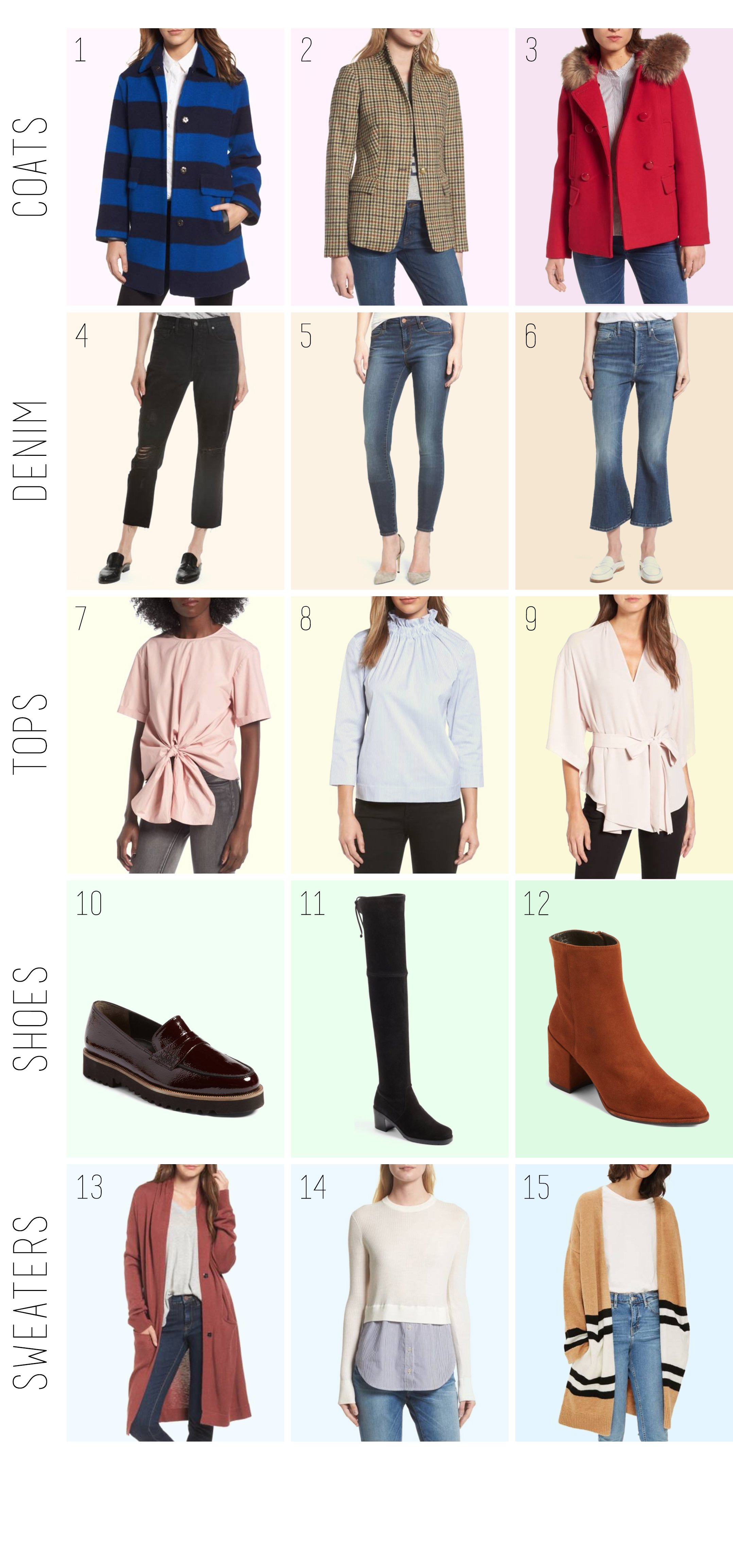 The three footwear silhouettes above are all high on my list for Fall, and all of course available in the Nordstrom Anniversary Sale. Platform soled loafers have just the right amount of attitude and are so easy to wear with cropped skinnies or a rolled up, looser boyfriend jean. Over the knee boots are more dramatic, but the chunky block heel on the pair above makes them so much more practical. Finally, ankle booties will be making a return to my Fall rotation this season, perfect back to my favorite Spanx that are also available in the sale! Lastly, I had my eye on these block heeled pumps as well. A total steal at under $80 and available in three color and a print!
