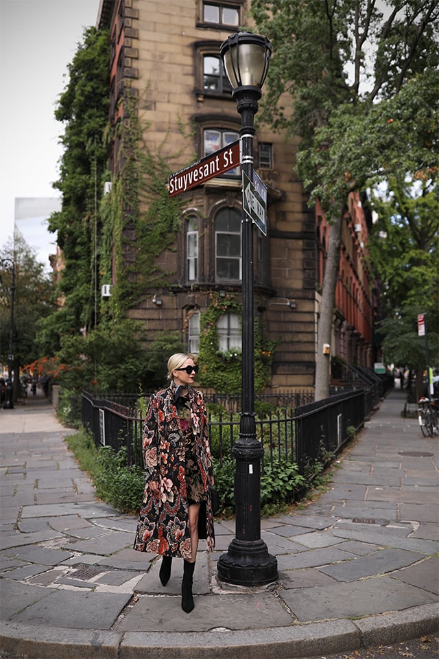 Dress: Eliza J. Coat: Stella McCartney (also seen here and here). Boots: Stuart Weitzman (Similar sock booties here, here and here for a fraction of the price!) Sunglasses: Elizabeth and James (these specific oval ones are sold out but similar retro style here). Belt Gucci (back in stock but probably not for long!). Thank you to Nordstrom for sponsoring this post!