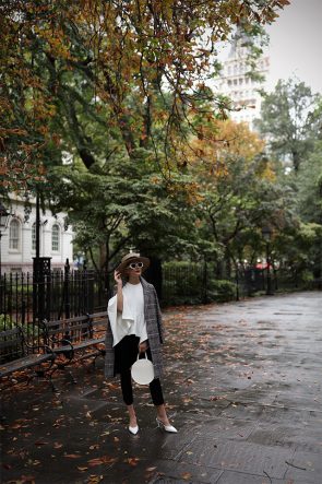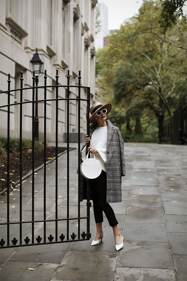 Black and white tweed coat: River Island (shop all coats here!). White mules: River Island. Black cropped jeans: River Island. Hat: Gucci. Bag: Clare V. You can get 20% all the River Island items I am wearing and all my other favorites below until 10/10 with COLUMBUS17, happy shopping! Thank you to River Island for partnering on this post.