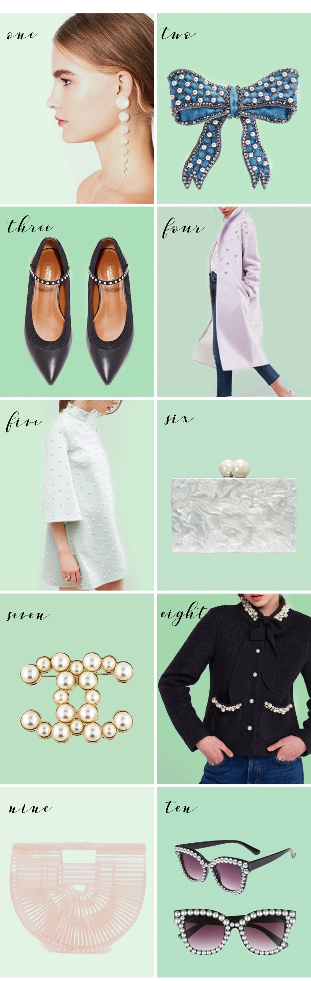 With winter fast approaching, and the holiday party circuit already in full swing, I am feeling for pearls. I’ve always loved the delicacy that a good pearl detail can add to a festive piece, and this season, with softer color palettes being offered more than ever, thanks to the addition of pearl detailing, I am appreciating the newest versions of my favorite colors. Icy pinks, blues, and mints are the perfect compliment back to classic winter whites, and luxe fabrics like velvet, soft wools, and lambskin leathers, make ideal backdrops for added pearl detailing. Dressing up for the holidays has always been one of my favorite pastimes – even more so this season with added pearls!