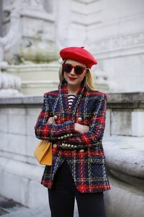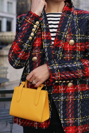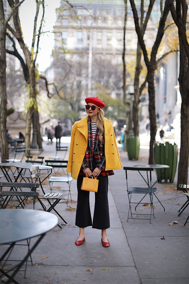 Blazer: Balmain (on sale, see my other sale picks below). Pants: SEA (also seen here with my favorite rainbow jacket). Yellow Peacoat: JCrew. Shoes: Chanel. Tee: JCrew (also love this striped tee with oversized pocket). Beret: UO. Faux Fur Stole: sold out but see my other favorites here! Also I began my gift guides for Holiday…you can see the first few over this way.