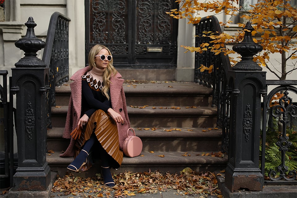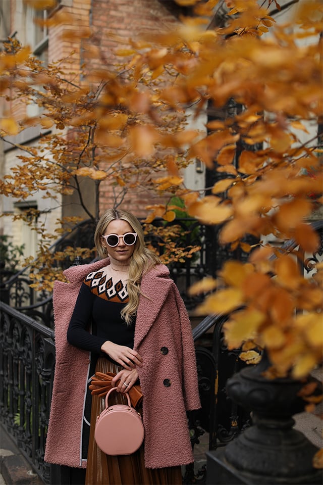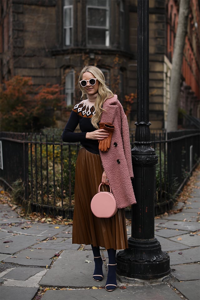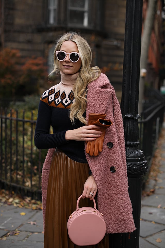 Fair Isle Sweater (also love this one and this one). Skirt: HM, now on sale (also seen here). Coat: Topshop (an all star in my closet- seen here, here, here, here and here). Tights: HUE (see more of how I wear HUE here). Shoes: BR, the perfect low heel. Bag: Mansur Gavriel. Sunglasses: Illesteva. Gloves: Zara.