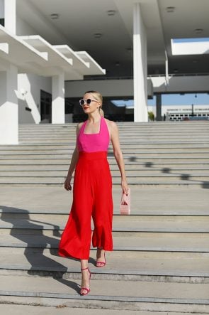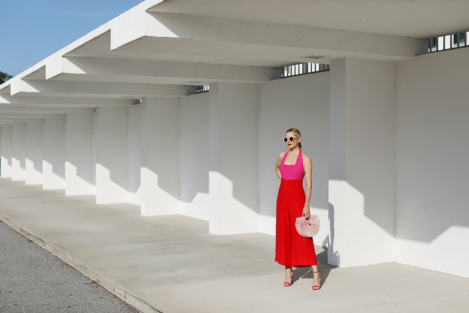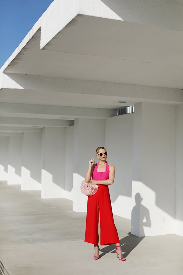 Pink & Red Jumpsuit: Staud (quickly becoming a favorite brand of mine!). Shoes: Schutz. Bag: Cult Gaia (shop all the colors here, love the green!). Lips: Stila. See all my current favorite red & pink picks here.