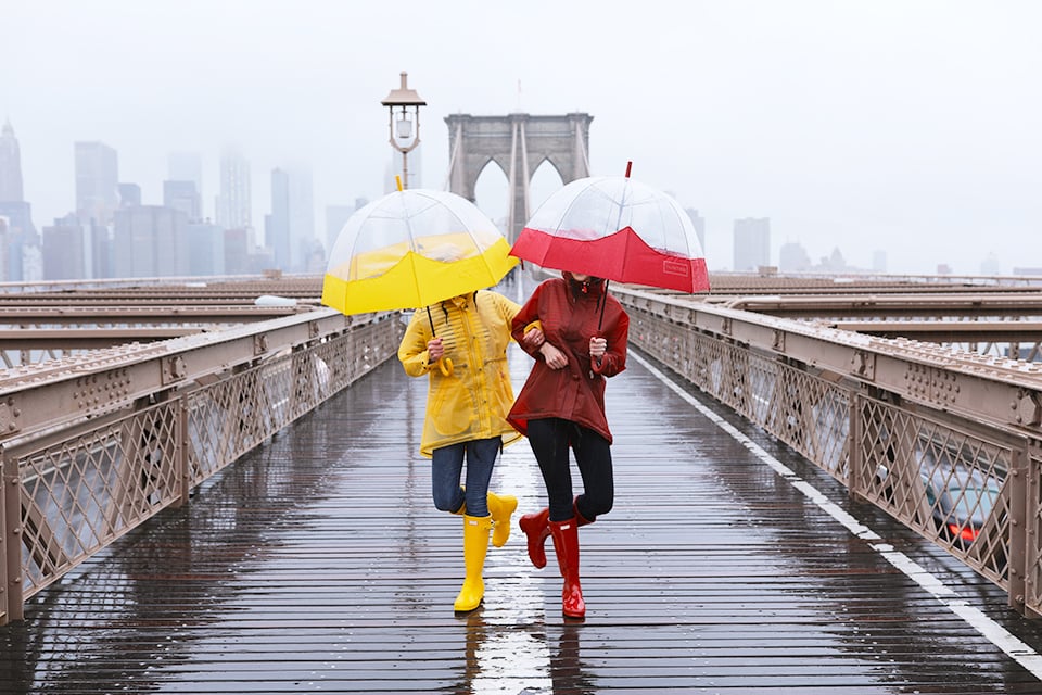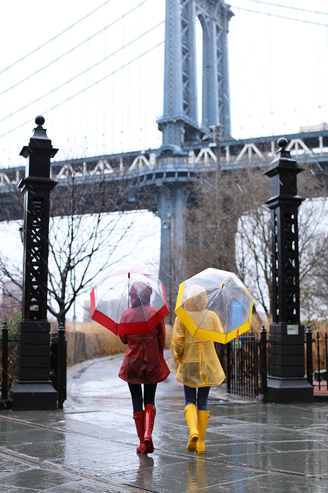 Outfit Details: Hunter yellow and red jackets here, Hunter original tall gloss rain boots in 13 colors here, & Hunter bubble umbrellas here (also love this pink stripe one)!