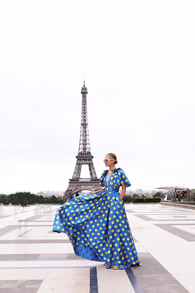 Polka Dot Gown: Carolina Herrera (shop more here and also love this polka dot gown). Shoes: Sam Edleman. Sunglasses: Illesteva. It wouldn’t be a trip to Paris without a dramatic shot of the Eiffel Tower. Check out all my favorite insta-worthy spots in Paris here (you can also check out NYC here and here!).