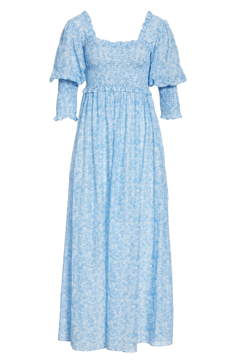 Ganni is quickly becoming one of my favorite brands and this baby blue dress caught my eye. I adore the smocking detail and squared neckline!