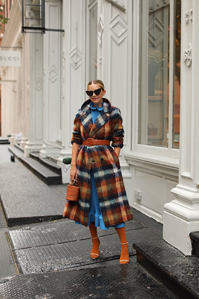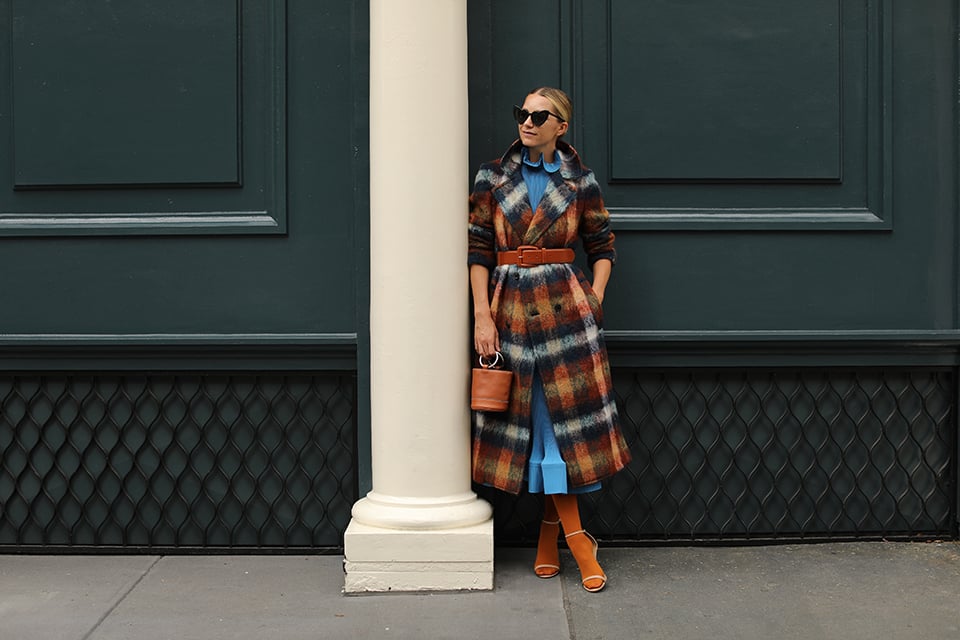 Dress: Tibi (also in yellow here and LOVE the top here). Plaid Coat: Toga. Belt: Halogen. Sunglasses: Saint Laurent. Shoes: Sold out, similar. Bag: Simon Miller (also love this size). Lips: Stila Stay All Day.