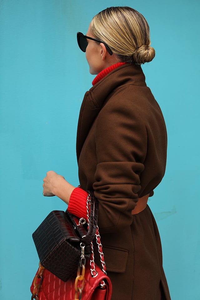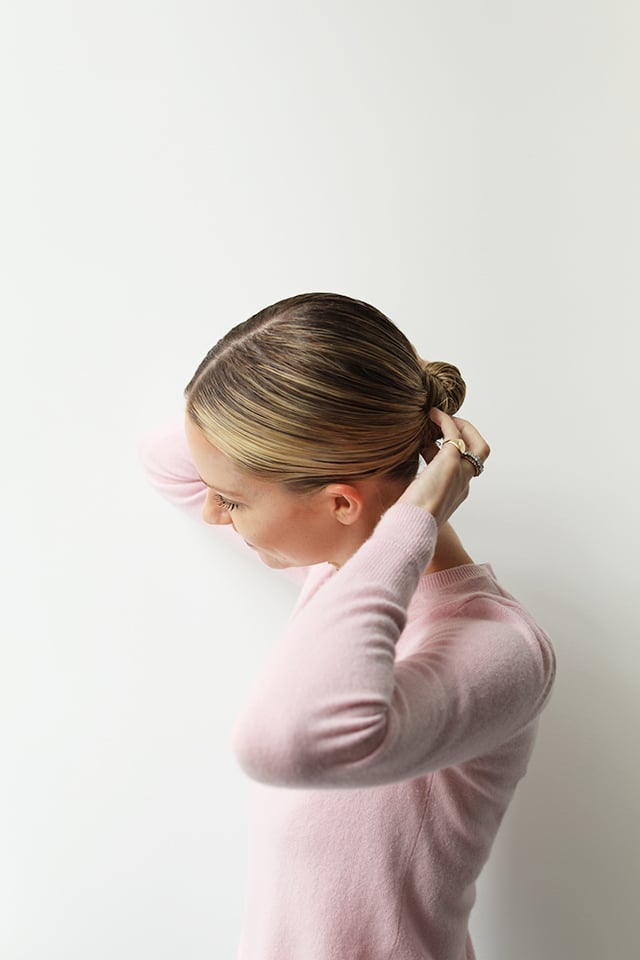 Recently, I have been loving wearing my hair in a low, tight bun. It is such an easy and quick way to do my hair each morning -and bonus – it stays looking chic all day. This style also allows me to cut out the number of days I have to apply harsh heat to my hair. This past NYFW, between the hectic schedule and horrible weather (think blistering heat, then non-stop pouring rain, and lots and lots of humidity), this was my go-to hairstyle. Scroll down to see how I achieve the look!