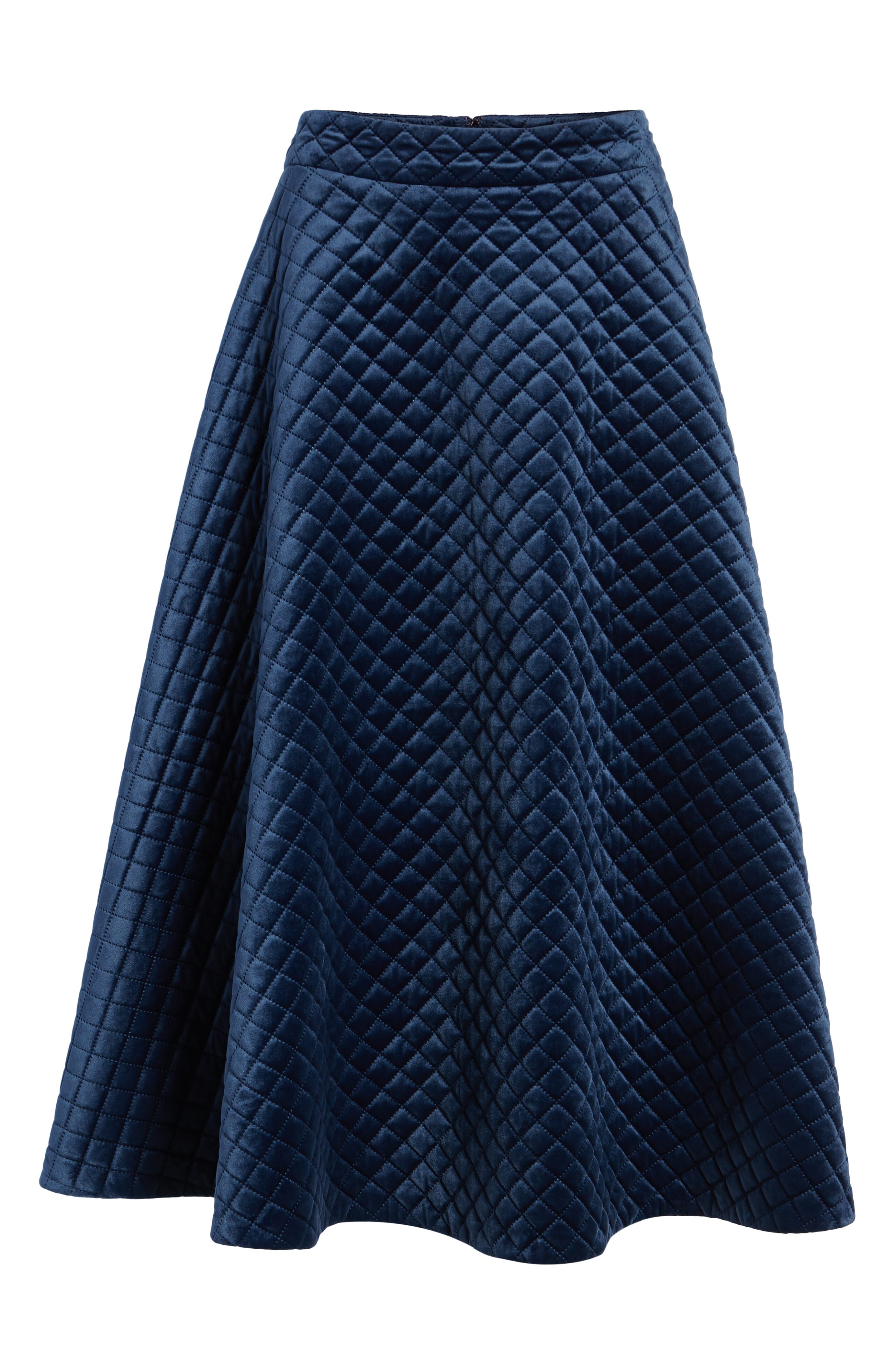 THE QUILTED MIDI SKIRT // $119 // This midi skirt is the only skirt in the collection that does not have an elastic waistband! Meant to sit at the natural waist and hit at mid calf, this navy colored skirt is easily outfitted back to so many of the blue hues in the collection. Runs true to size!