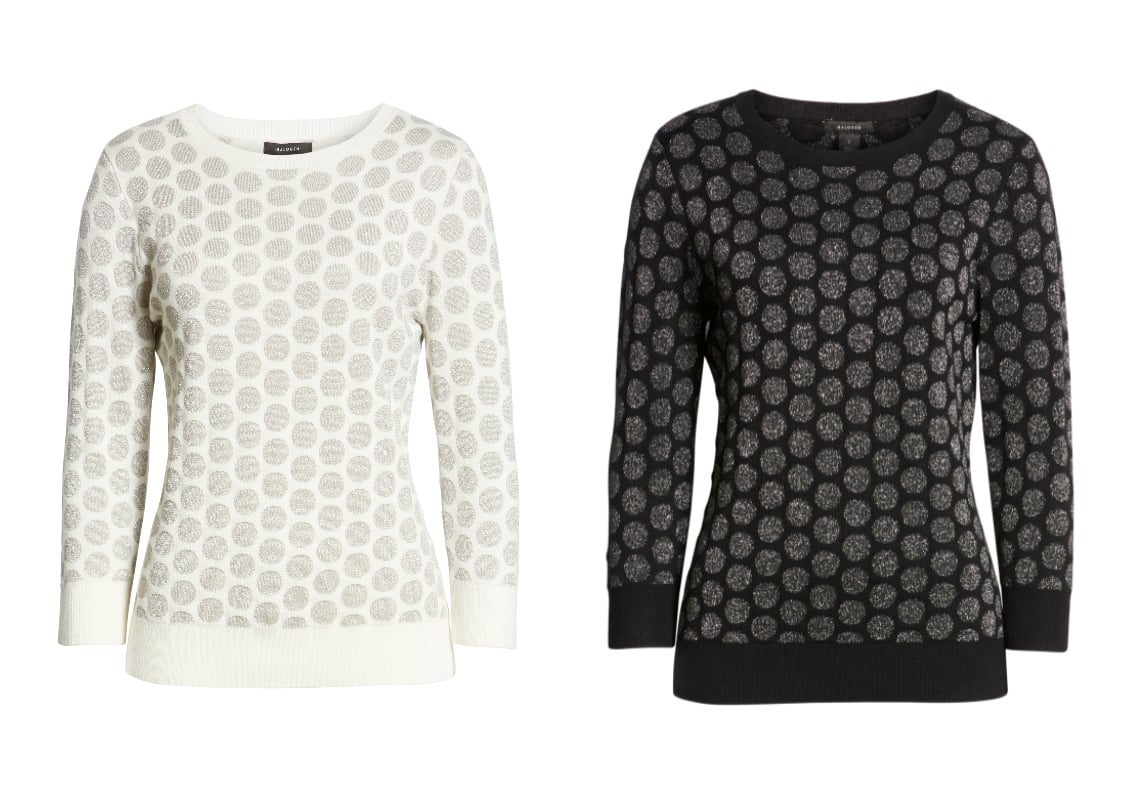 THE LUREX DOT SWEATER // $79 // More dots please! We created this lurex dot sweater to be worn with the polka dot skirt, but it honestly goes with so many items in the collection (I love how so many women in Chicago paired it with the paperbag pant)! This sweater is slightly more fitted with a bracelet length sleeve.