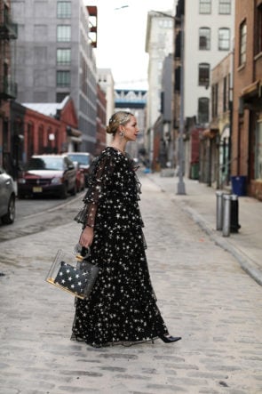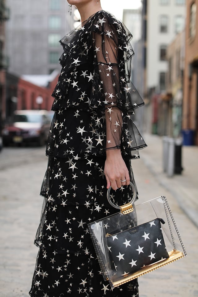 Dress: ASOS. Earrings: Jennifer Behr. Crown: Jennifer Behr. I am also in love with this bow barette and these bow earrings by Jennifer Behr. Shoes: Atlantic-Pacific X Halogen. Star Pouch: Flynn. Lips: Stila Beso. Into stars right now? I also love these star jeans, this star dress and this star sweater!