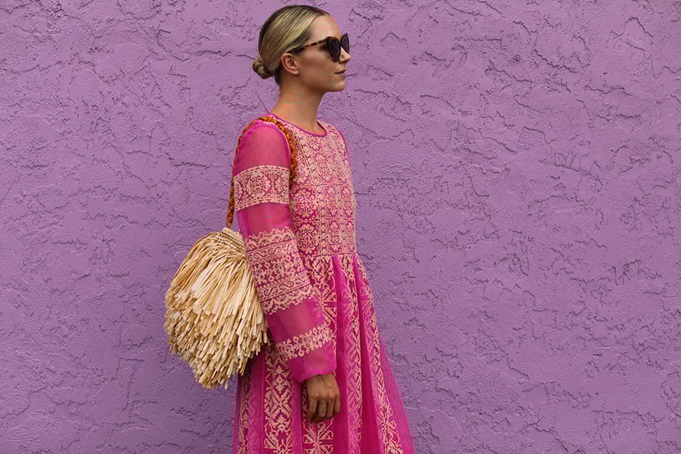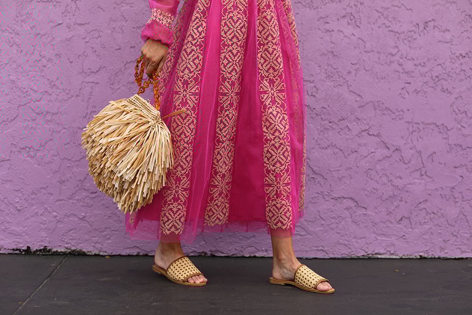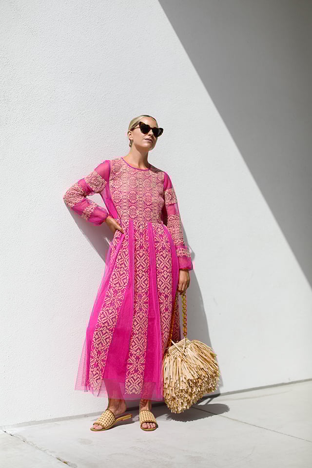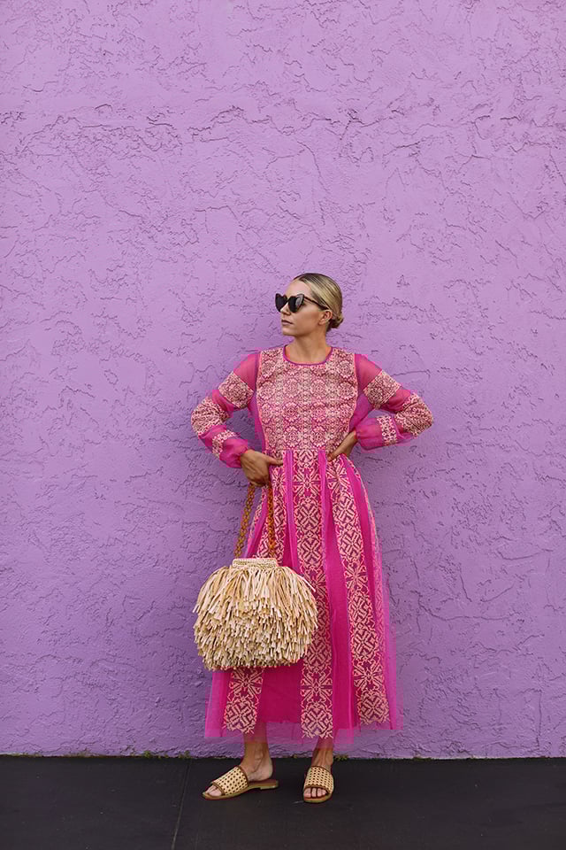 Dress: REDValentino. Bag: Carolina Santo Domingo. Shoes: St.Agni. Sunglasses: Saint Laurent. Lips: Stila Baci.
