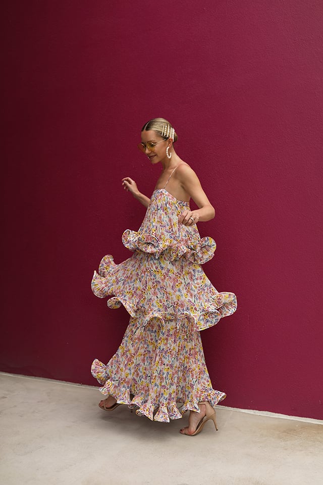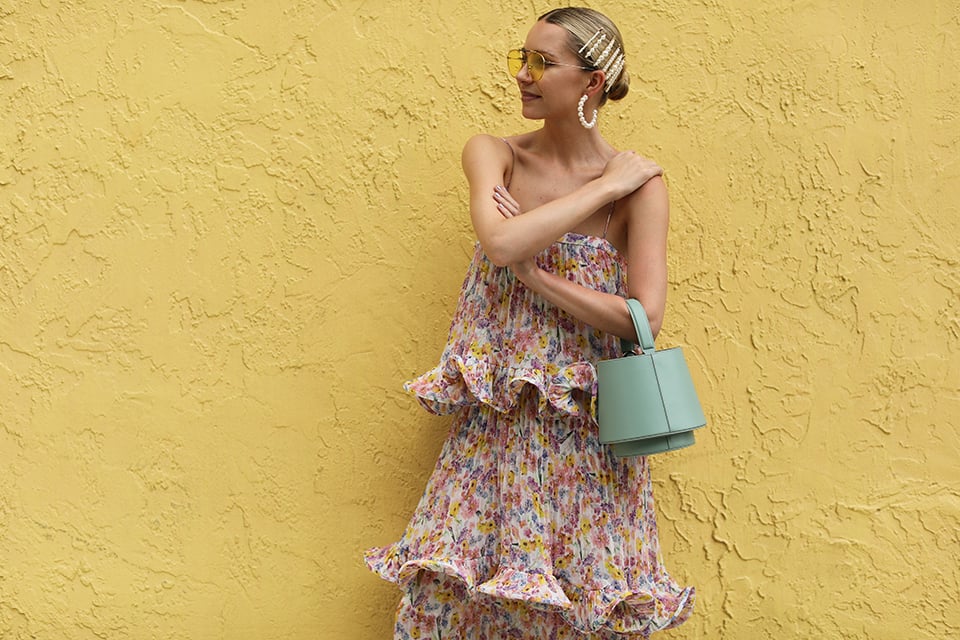 Dress: AMUR. Hair Pins: Amazon. Sunglasses: ReFrame. Earrings: Lele Sadoughi (also love these). Heels: old, but similar here. Bag: Mlouye (last seen here).