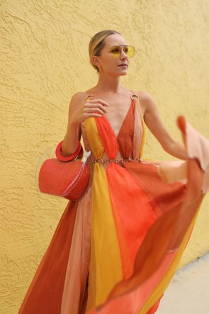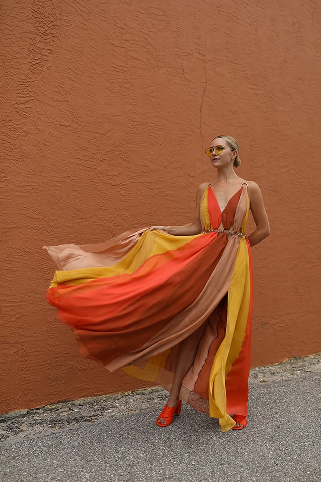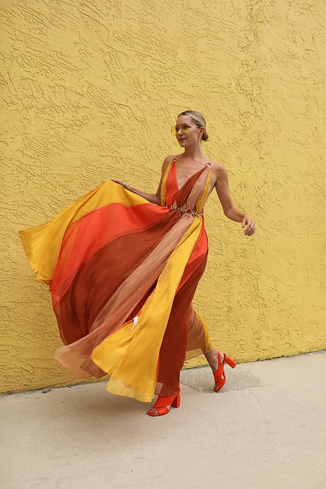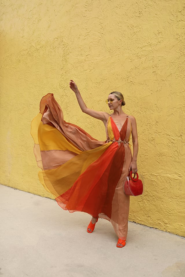 Dress: ASOS. Shoes: Mercedes Castillo. Sunglasses: Reframe. Bag: Staud.