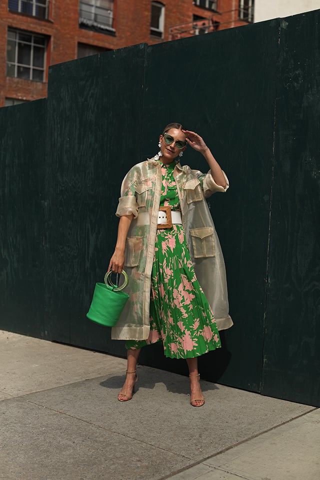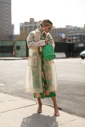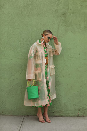 Transparent Trench: Ganni. Bag: Simon Miller (smaller size here). Top: Topshop. Skirt: Topshop. Belt: Cult Gaia (back in stock- also love this one, this one and this one!). Sunglasses: Vintage. Earrings: Jennifer Behr.