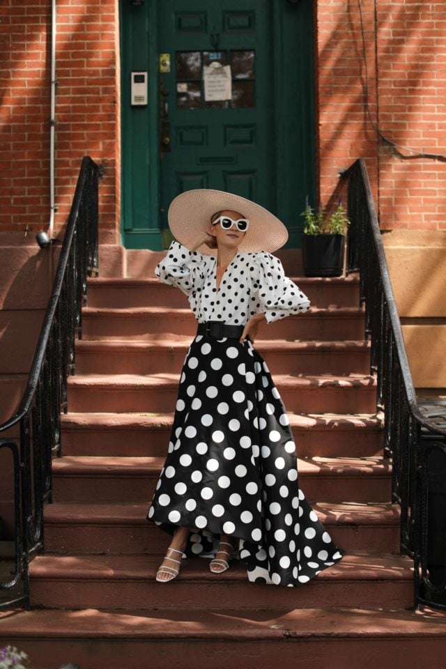 Skirt: Carolina Hererra. Sunglasses: Celine. Shoes: Zara. Top: Jacquemus. Belt: Atlantic-Pacific X Halogen. Hat: Eric Javits.