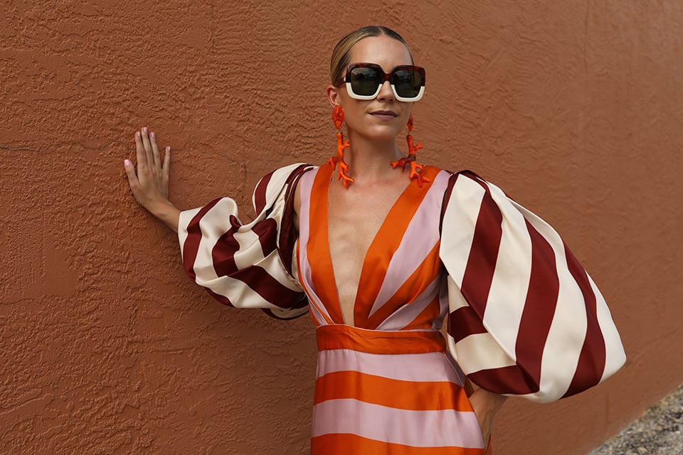 Dress: Johanna Ortiz. Bolero: Johanna Ortiz. Sunglasses: Carolina Herrera. Earrings: Dinosuar Designs (also love these). Nails: Essie ‘Fiji’. Lips: Stila ‘Beso’.