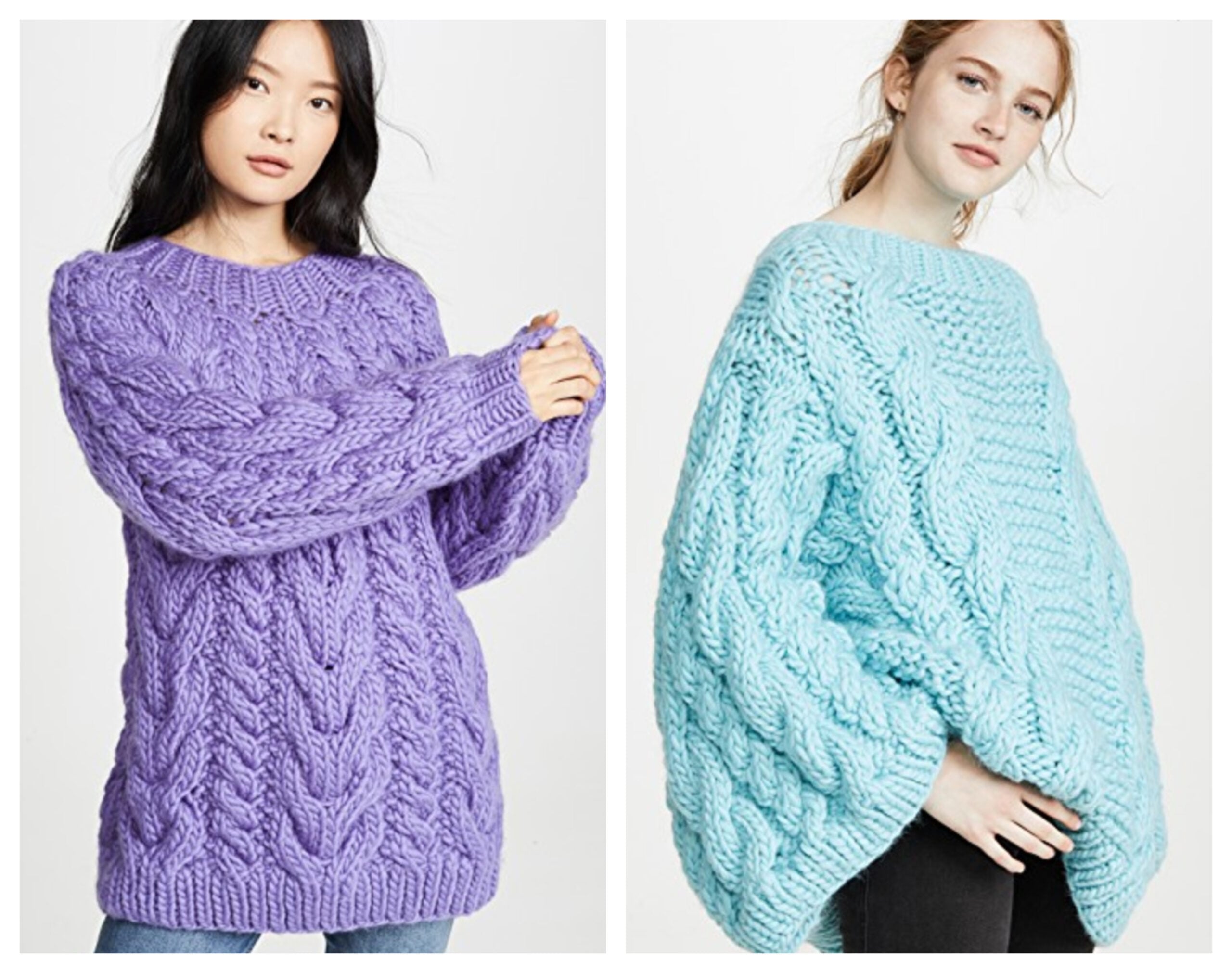 COZY AND CHUNKY // Cozy up in this lilac crew neck or this open neck teal sweater!