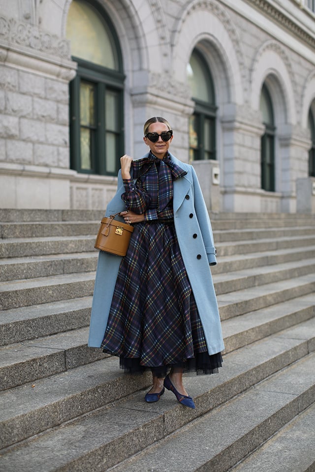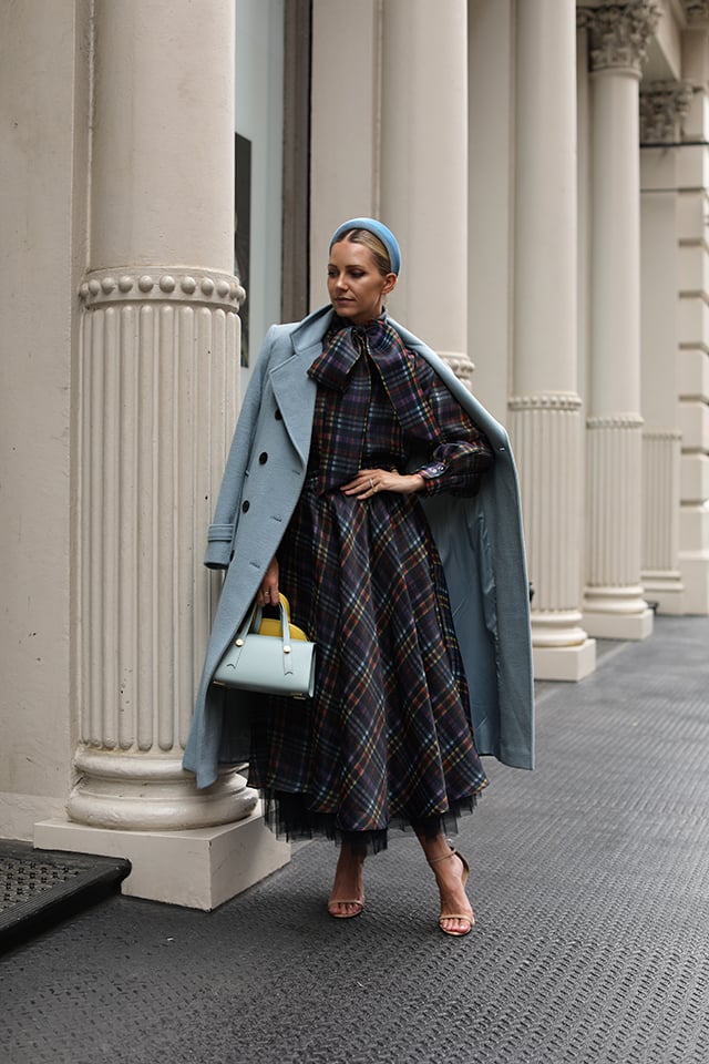 PLAID PARTY // Coat: Atlantic-Pacific X Halogen. Skirt: Atlantic-Pacific X Halogen. Bow Top: Atlantic-Pacific X Halogen. Bag: Mansur Gavriel and Flynn. Shoes, Heels: BR (old). Shoes, Flats: Atlantic-Pacific X Halogen.