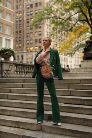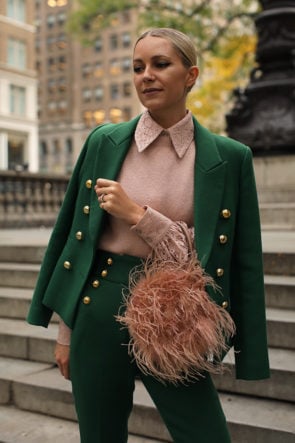 Pants: Atlantic-Pacific x Halogen. Blazer: Atlantic-Pacific x Halogen. Sweater: Atlantic-Pacific x Halogen.