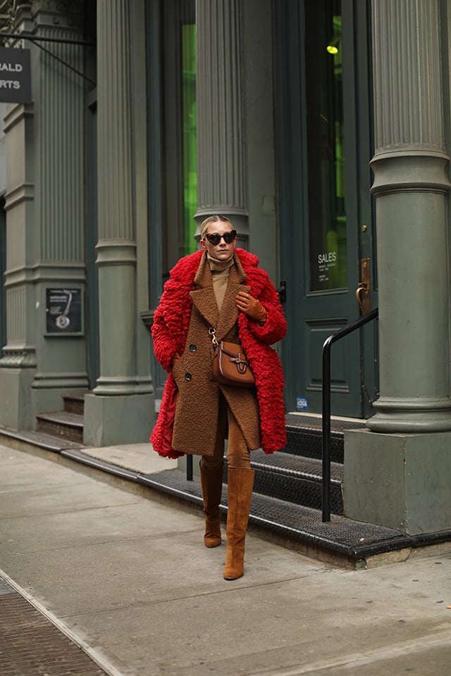 Boots: Sezane. Coats: Both Topshop. Pants: . Sweater: Everlane. Bag: Gucci.