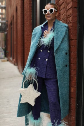 Jacket and Pants: Topshop (old, I added the feathers!). Coat: Kate Spade. Bag: Atlantic-Pacifc x Halogen (coming 11/18). Sunglasses: Celine.