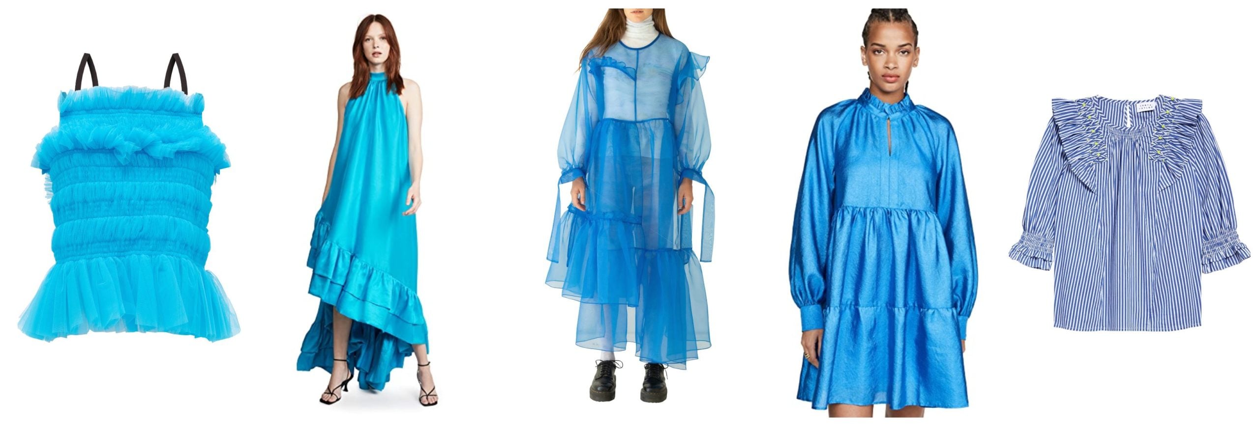 Tulle Top // High Neck Gown // Sheer Organza Dress // Metallic Crepe Dress // Ruffle Trim Striped Top