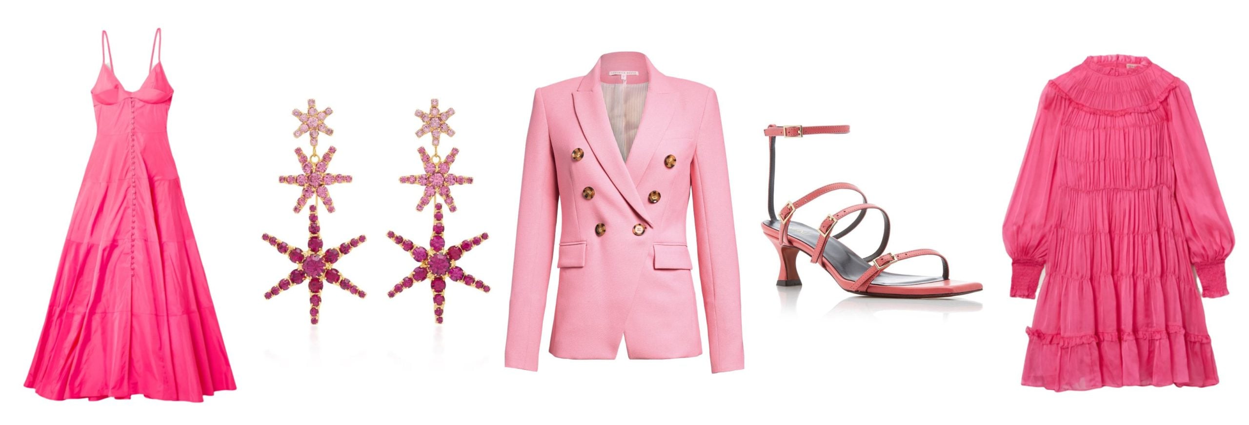 Tiered Maxi Dress // Star Drop Earrings // Double Breasted Blazer // Leather Strappy Sandals // Shirred Mini Dress