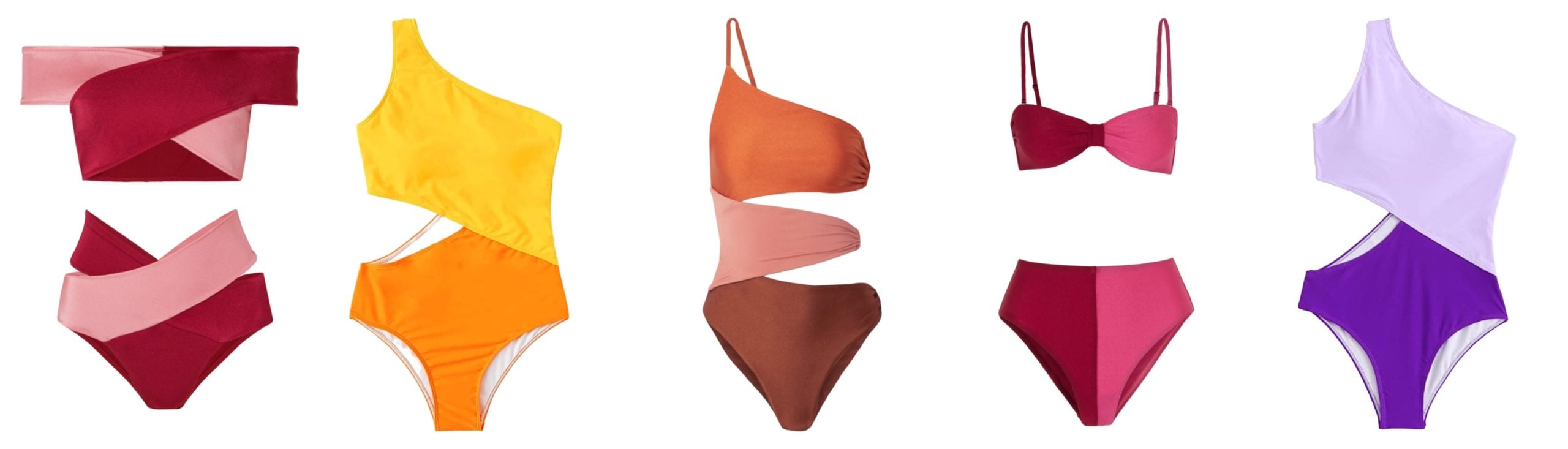 Off the Shoulder Cutout Bikini // Sunset One Piece // Color-Block Cutout // Two-Tone Bikini // Violet One Piece